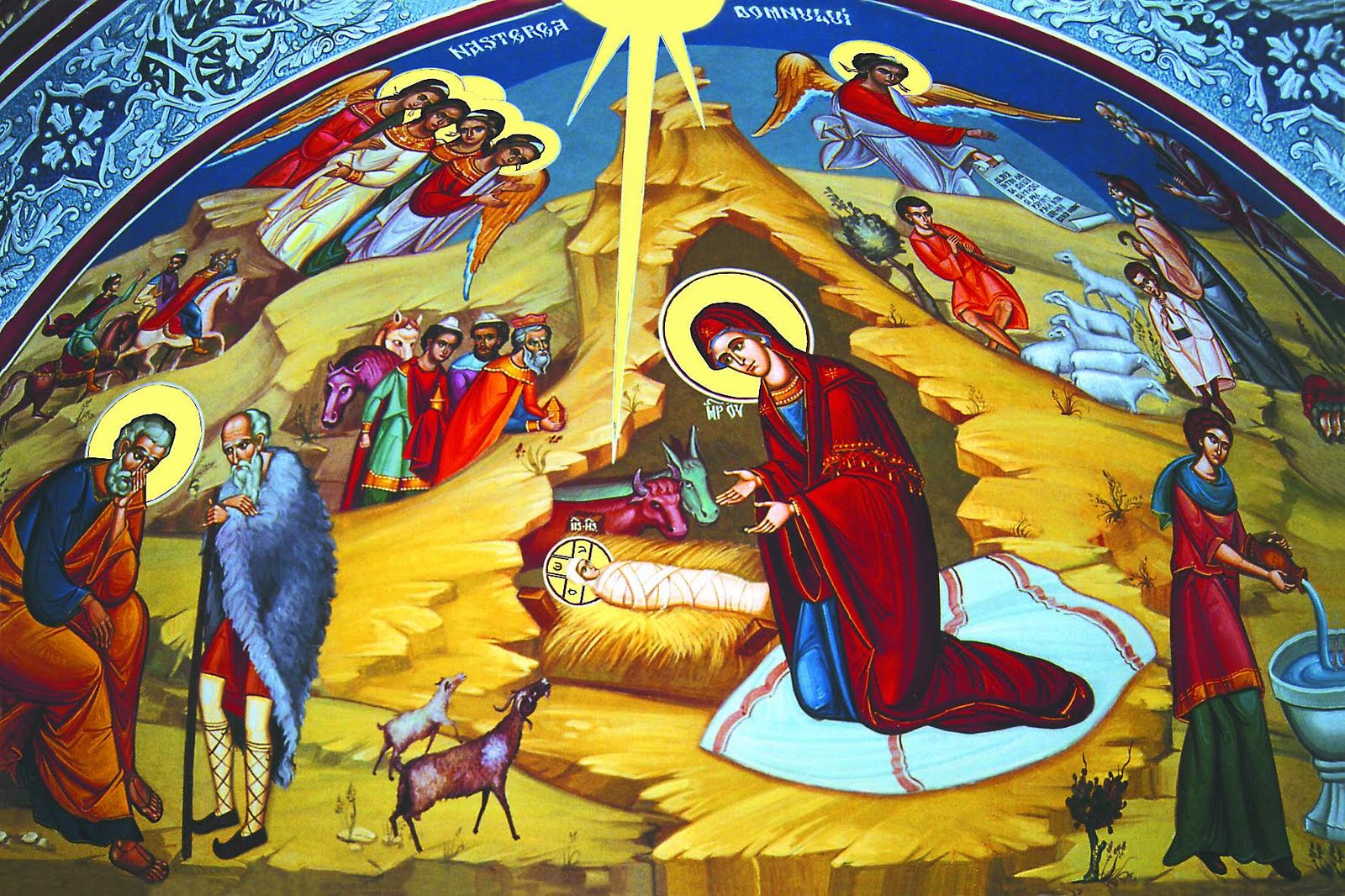 Magii „merg după rază [după raza stelei minunate, care era un Înger n.n.]/ pe Hristos să-L vază” [Cântările…, ed. cit., p. 341]. Și Îl găsesc, după cum ne confirmă Mt. 2, 11, și I-au adus Lui daruri [dora]: aur [hrison], tămâie [livanon] și smirnă [smirnan], cf. GNT.